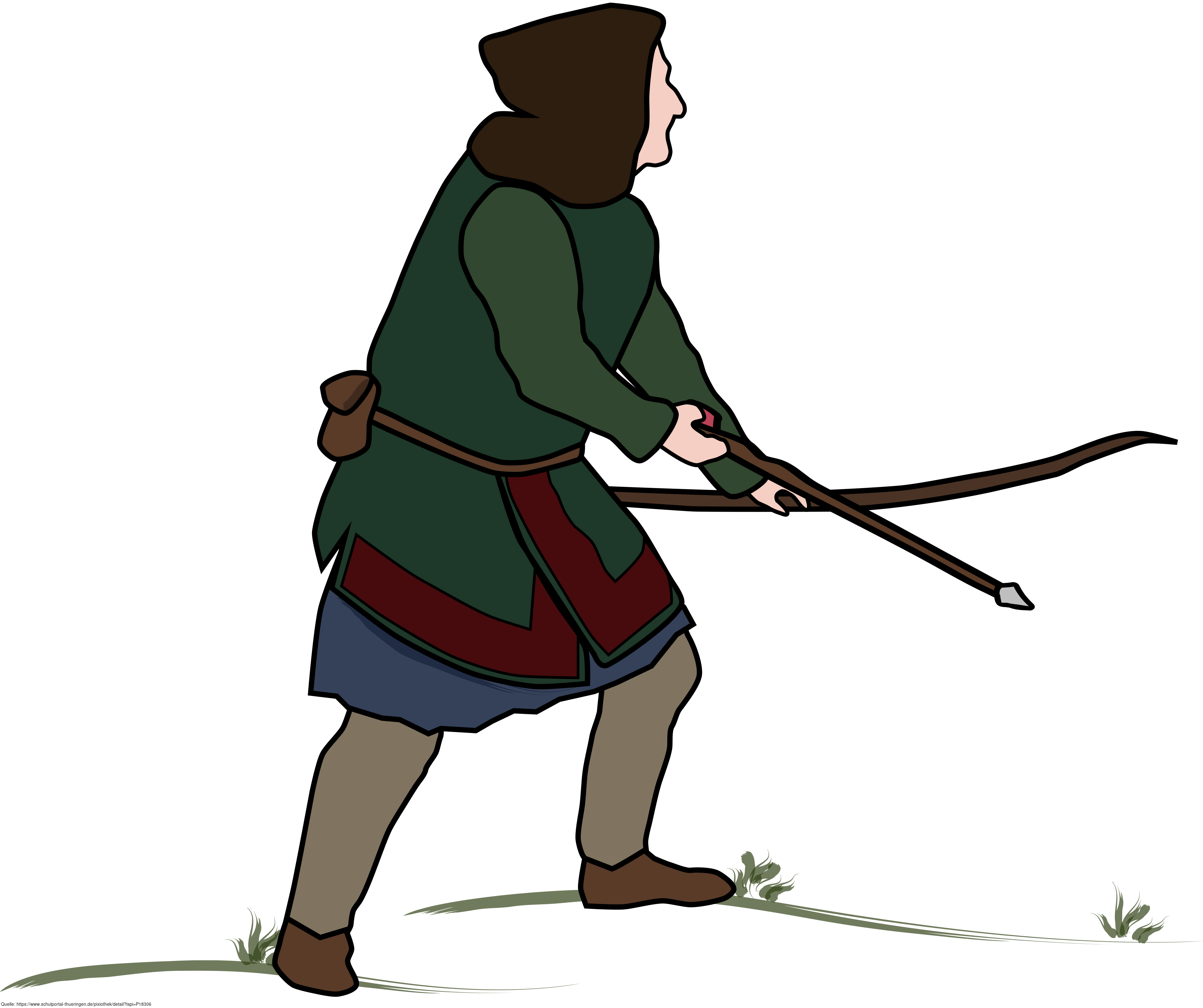 Das Bild zeigt einen gezeichneten Mann beim Jagen bzw. einen Jäger. Es stammt aus dem Projekt "Didactica Bavaria Bohemia" - Materialpakete daraus siehe "Verwandte Medien (Auswahl)". Das Bild ist unter CC0 lizenziert und kann somit frei verwendet werden.