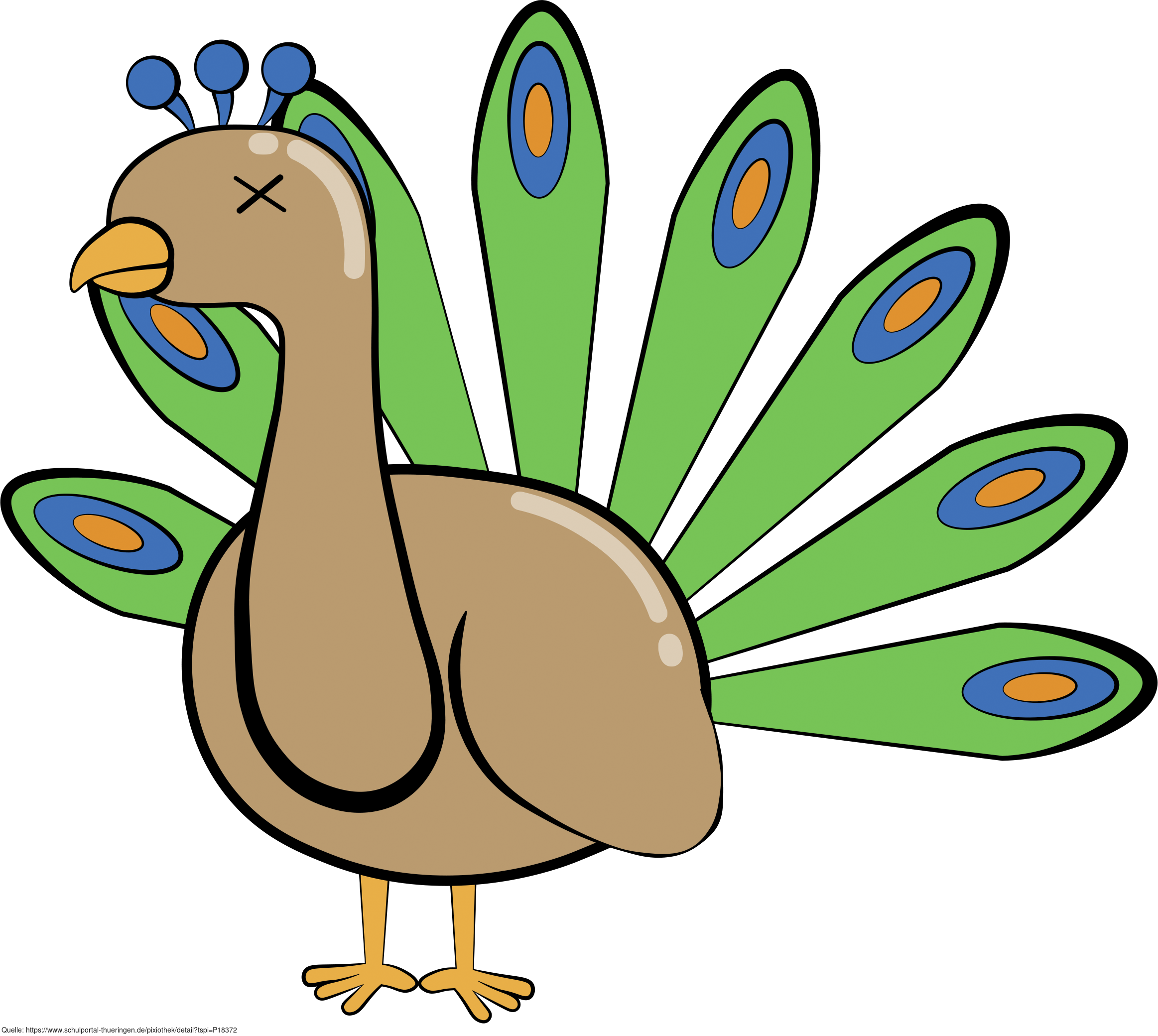 Das Bild zeigt einen gezeichneten Pfau. Es stammt aus dem Projekt "Didactica Bavaria Bohemia" - Materialpakete daraus siehe "Verwandte Medien (Auswahl)". Das Bild ist unter CC0 lizenziert und kann somit frei verwendet werden.