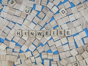 Aus Buchstaben wurde das Wort "Hinweise" gelegt. Es gelten die Nutzungsbedingungen der Mediothek und Pixiothek.