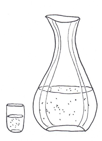 Das Bild zeigt eine gezeichnete Karaffe und ein gezeichnetes Glas mit Wasser (s/w). Es gehört zur Serie "Ernährungspyramide zum Basteln und Gestalten" und findet u.a. im gleichnamigen Lernobjekt unter https://www.schulportal-thueringen.de/web/guest/media/detail?tspi=18517 Verwendung. Es gelten die Nutzungsbedingungen der Mediothek und Pixiothek.