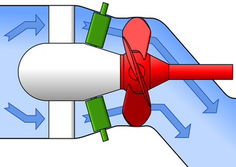 Das Bild gehört zur Serie "Turbinenarten". Es zeigt die Skizze einer S-Turbine (eine Variante der Kaplan-Turbine). Das Bild ist unter CC0 lizenziert und kann somit frei verwendet werden.