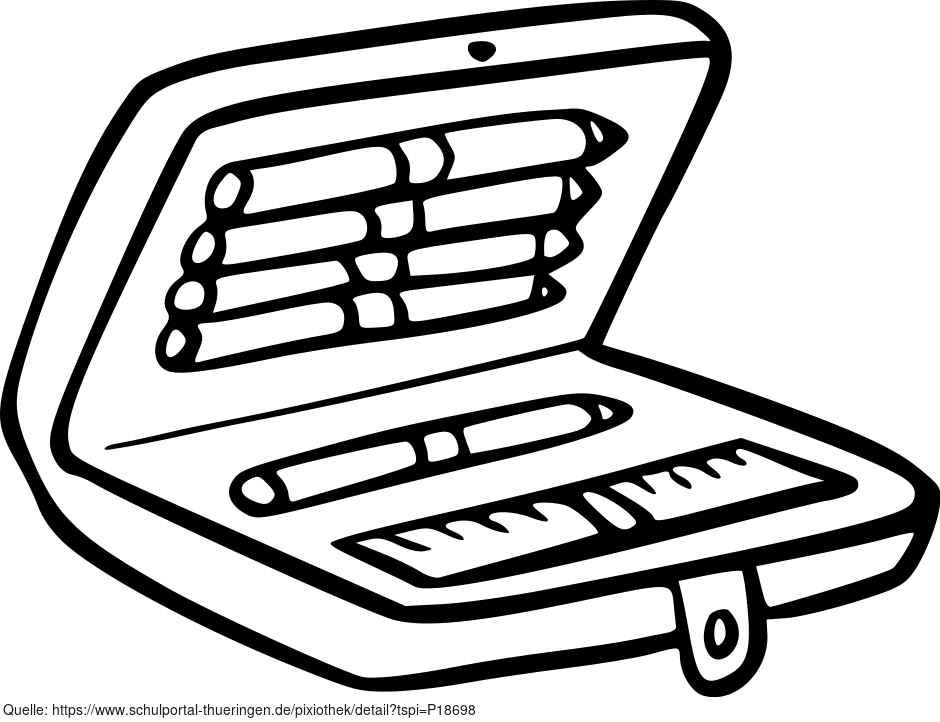 Die Zeichnung (s/w) zeigt eine Federtasche bzw. Federmappe. Das Bild ist unter CC0 lizenziert und kann somit frei verwendet werden. Es ist neben weiteren Bildern auch hier zu finden: https://cocomaterial.com
