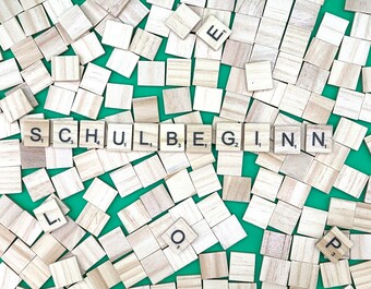 Aus Buchstaben wurde der Begriff „Schulbeginn" gelegt. Es gelten die Nutzungsbedingungen der Mediothek und Pixiothek.