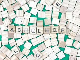 Aus Buchstaben wurde der Begriff „Schulhof" gelegt. Es gelten die Nutzungsbedingungen der Mediothek und Pixiothek.
