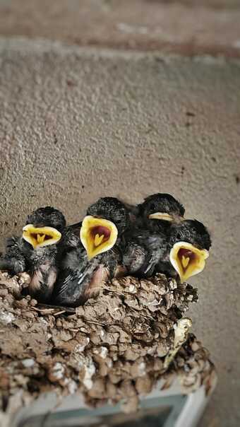 Junge Rauchschwalben nach der Fütterung