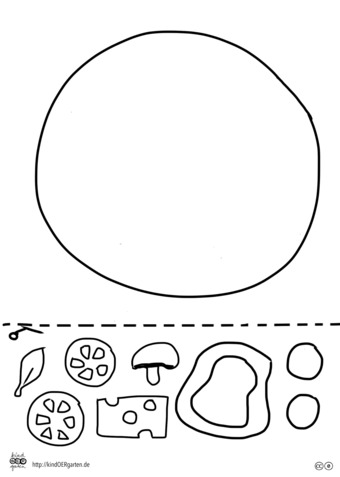 Das Bild zeigt eine vegetarische Pizza (s/w) und kann als Schnipselbildvorlage für Kinder im Kindergarten bzw. Elementarbereich dienen. Das Bild ist unter CC0 lizenziert und kann somit frei verwendet werden. Es ist neben weiteren Bildern auch hier zu finden: https://kindoergarten.wordpress.com/