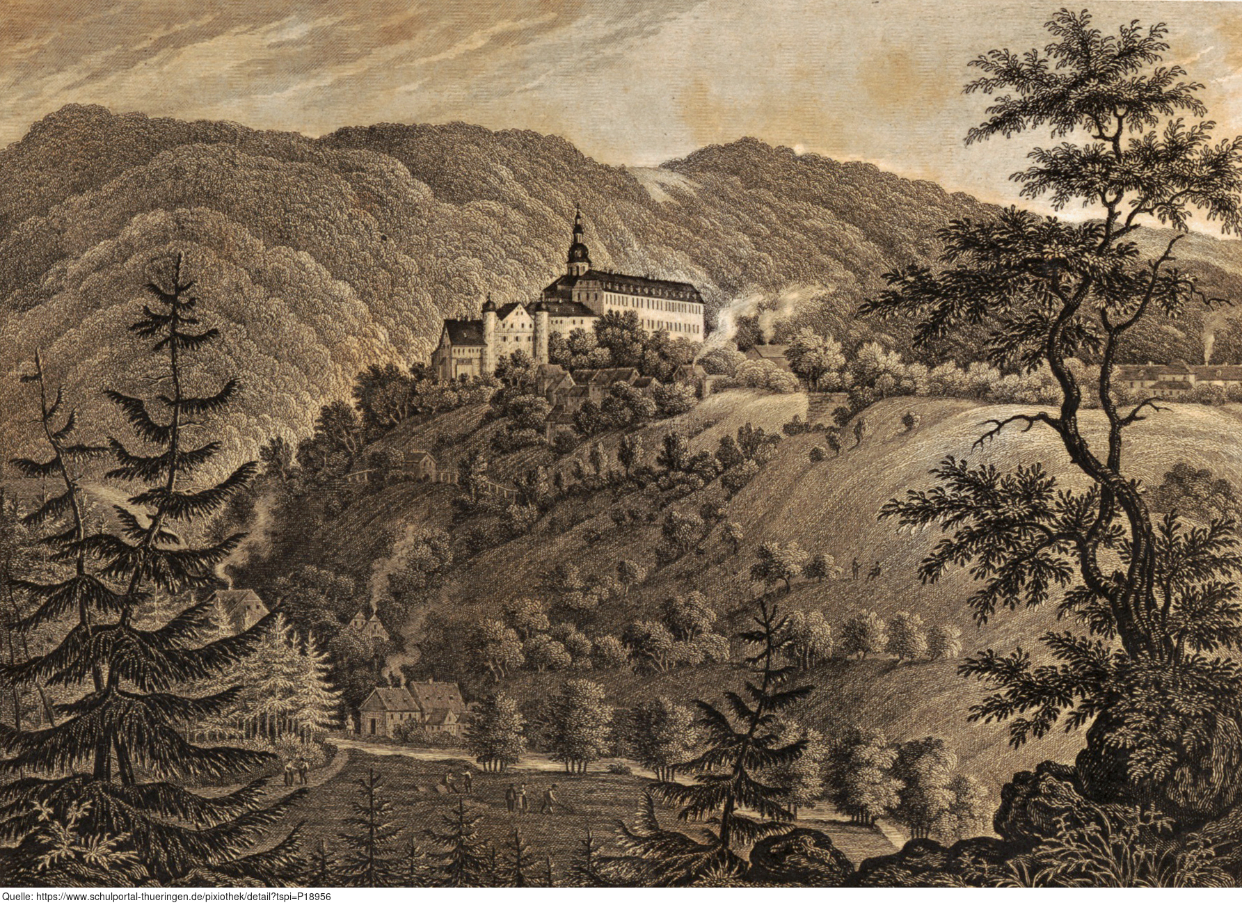 Die Abbildung zeigt eine Ansicht von Schloss Schwarzburg. Das Bild stammt aus Band 6 von „Meyer's Universum oder Abbildung und Beschreibung des Sehenswerthesten und Merkwürdigsten der Natur und Kunst auf der ganzen Erde“, erschienen 1839. Das Digitalisat ist bei der Universitäts- und Landesbibliothek Düsseldorf unter https://nbn-resolving.org/urn:nbn:de:hbz:061:1-621303 abrufbar. Das Gesamtwerk wurde unter Public Domain Mark 1.0 Universell lizenziert, ist somit gemeinfrei und kann frei verwendet werden.
