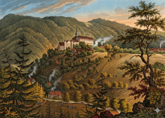 Die Abbildung zeigt eine Ansicht von Schloss Schwarzburg. Das Bild stammt aus Band 6 von „Meyer's Universum oder Abbildung und Beschreibung des Sehenswerthesten und Merkwürdigsten der Natur und Kunst auf der ganzen Erde“, erschienen 1839. Das Digitalisat ist bei der Universitäts- und Landesbibliothek Düsseldorf unter https://nbn-resolving.org/urn:nbn:de:hbz:061:1-621303 abrufbar. Das Gesamtwerk wurde unter Public Domain Mark 1.0 Universell lizenziert, ist somit gemeinfrei und kann frei verwendet werden. Diese Bildvariante wurde mittels KI (Gemini) nachbearbeitet und coloriert.