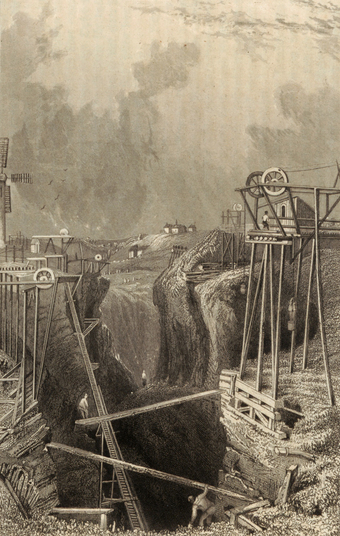 Die Abbildung zeigt die Eisenminen zu Dannemora. Die Eisenminen von Dannemora in Schweden waren über Jahrhunderte hinweg Schwedens wichtigstes Eisenerzbergwerk, bekannt für die Produktion hochreinen Eisenerzes, das für seine Qualität berühmt war und unter anderem in der Wallonischen Schmiedekunst verwendet wurde, bis das Bergwerk 1992 geschlossen wurde. Die Minen wurden bereits im 13. Jahrhundert erwähnt.