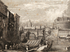 Blick über Tiberbrücke auf Engelsburg (Castel Sant'Angelo), Peterskirche und Vatikan (coloriert)