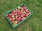 Das Bild zeigt einen geflochtenen Korb mit Äpfeln auf dem ApfelGut Erfurt. Es gelten die Nutzungsbedingungen der Mediothek und Pixiothek.