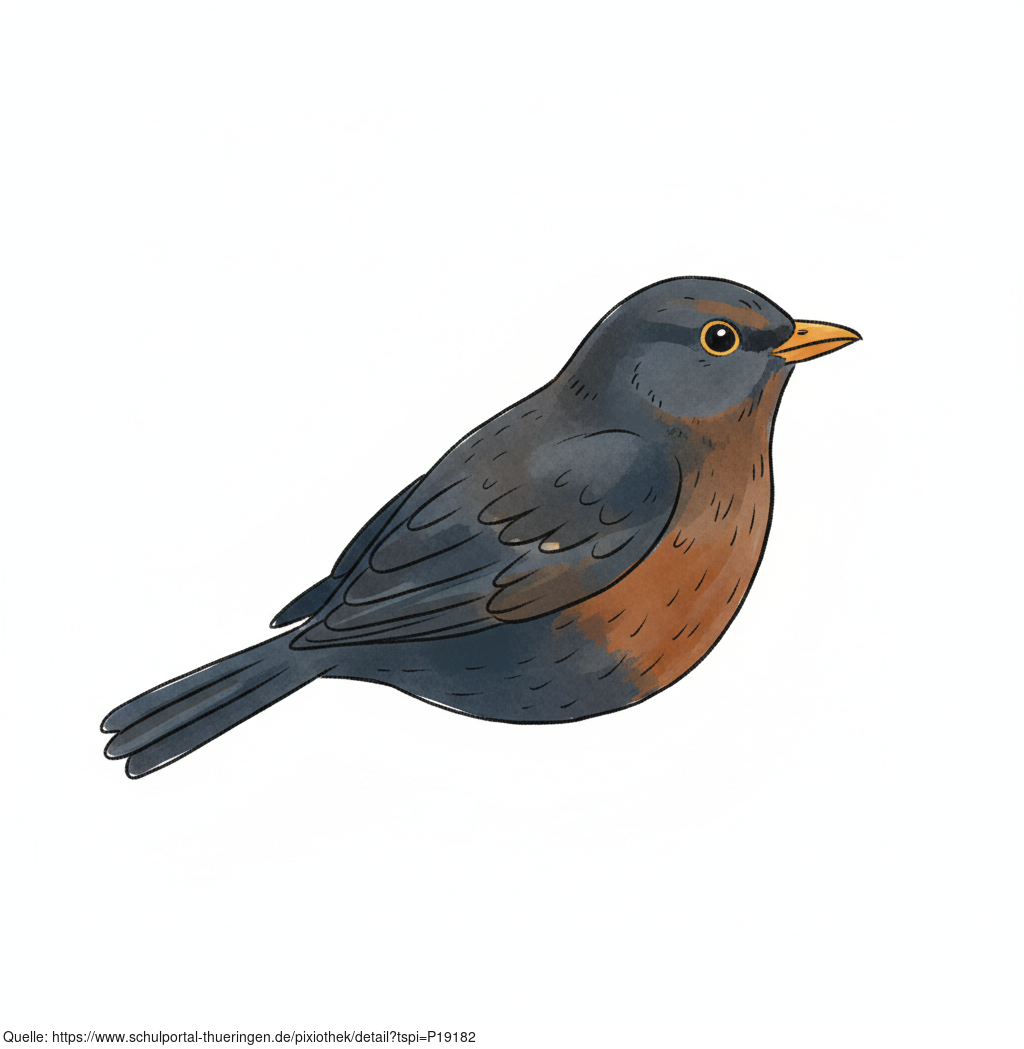 Das Bild zeigt eine gezeichnete Amsel. Das Bild wurde mittels einer KI (Gemini) erstellt und ist unter CC0 lizenziert. Weitere Bilder aus Herrn Emrich-Försters Bild-Archiv findet man hier: https://pix.foerster.rocks/