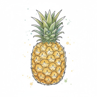 Das Bild zeigt eine gezeichnete Ananas. Das Bild wurde mittels einer KI (Gemini) erstellt und ist unter CC0 lizenziert. Weitere Bilder aus Herrn Emrich-Försters Bild-Archiv findet man hier: https://pix.foerster.rocks/