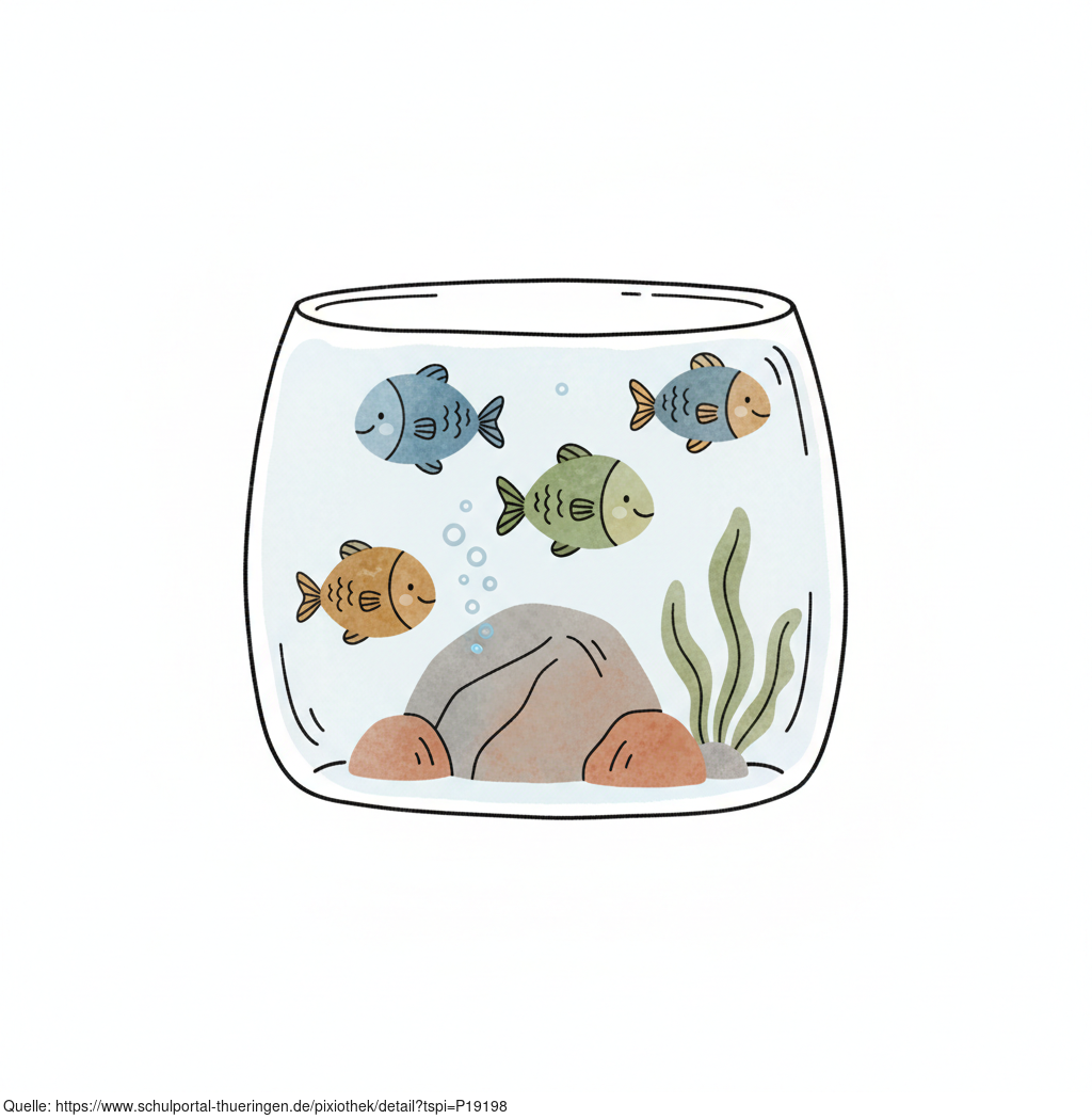 Das Bild zeigt ein gezeichnetes Aquarium. Das Bild wurde mittels einer KI (Gemini) erstellt und ist unter CC0 lizenziert. Weitere Bilder aus Herrn Emrich-Försters Bild-Archiv findet man hier: https://pix.foerster.rocks/