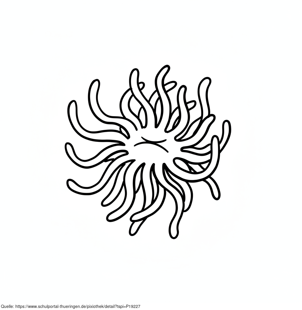 Das Bild zeigt eine gezeichnete Anemone, Seeanemone. Das Bild wurde mittels einer KI (Gemini) erstellt und ist unter CC0 lizenziert. Weitere Bilder aus Herrn Emrich-Försters Bild-Archiv findet man hier: https://pix.foerster.rocks​​​​​​​​​​​/