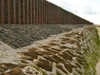 Spiekeroog: Gemauerte Steinwand vor Dünen