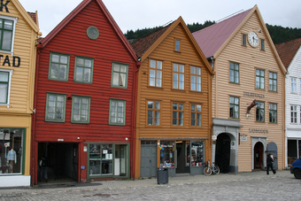 Abgebildet sind Häuser im Hafenviertel von Bergen.