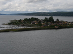Abgebildet ist ein typisches Haus an einem Fjord.
