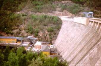 Abgebildet ist die Staumauer Hohenwarte mit Umformstation .