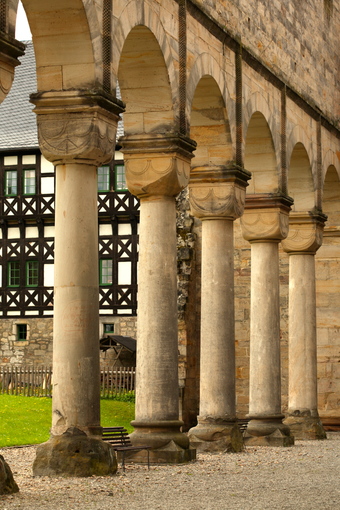 Das Foto gehört zur Serie "Klosterruine Paulinzella". Es zeigt Säulen. - - Es gelten die Hinweis für Bilder mit Motiven von Stiftungsobjekten der Stiftung Thüringer Schlösser und Gärten: Es gilt grundsätzlich, dass die Bilder ausschließlich zur Bereitstellung für Unterrichtszwecke verwendet werden dürfen. Jede Art der darüber hinausgehenden Publikation der von einem Standort innerhalb der Stiftungs-Liegenschaften aufgenommenen Motive bedarf einer gesonderten schriftlichen Genehmigung durch die Stiftung Thüringer Schlösser und Gärten.