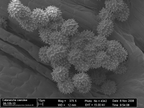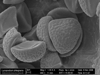Das Bild gehört zu einer Serie Pollen-Fotografien, die mit einem Rasterelektronenmikroskop aufgenommen wurden. Zu sehen sind Pollen von Catananche caerulea, der Blauen Rasselblume. Entstanden ist das Bild im Zuge der Ausbildung zum Biologielaboranten/ zur Biologielaborantin an der Uni Jena.