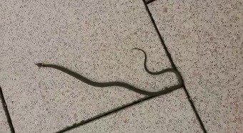Zu sehen ist eine Ringelnatter auf einer sonnigen Terrasse im Herbst. Länge des Videoclips: 1:21 min.