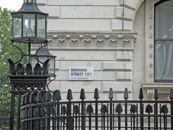 Das Foto gehört zur Serie London 2016. Es zeigt das Straßennamensschild der Downing Street auf der Seite von Whitehall, einer Straße im Regierungsviertel Westminster. Es gelten die Nutzungsbedingungen der Mediothek und Pixiothek.