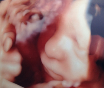 Ultraschallaufnahme eines menschlichen Embryos in der 34. Schwangerschaftswoche. Es gelten die Nutzungsbedingungen der Mediothek und Pixiothek.