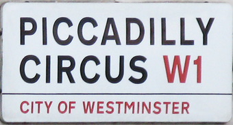 Das Foto gehört zur Serie London 2016. Das Schild an einer Hauswand des Piccadilly Circus benennt den Namen dieser Straßenkreuzung und dieses Platzes. Es gelten die Nutzungsbedingungen der Mediothek und Pixiothek.