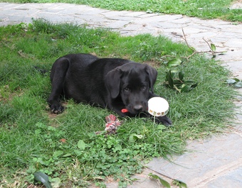 Das Foto hehört zur Serie Hunde. Es zeigt einen jungen schwarzen Labrador Retriever. Es gelten die Nutzungsbedingungen der Mediothek und Pixiothek.
