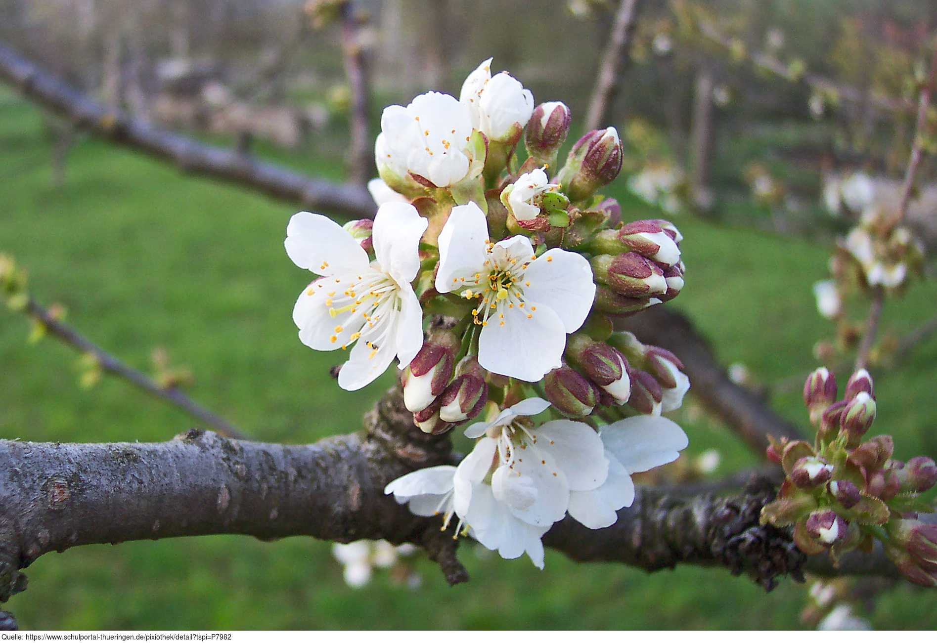 Das Foto gehört zur Serie Obstbäume. Es zeigt Kirschblüten der Süßkirsche. Es gelten die Nutzungsbedingungen der Mediothek und Pixiothek.