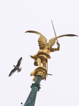 Das Foto gehört zur Serie "Mont Saint Michel". Es zeigt die Engelsfigur auf dem Hauptturm. Es gelten die Nutzungsbedingungen der Mediothek und Pixiothek.