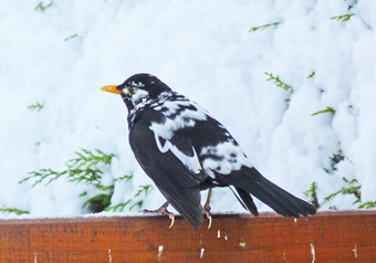 Das Foto gehört zur Serie "Vögel im Winter". Es zeigt ein Amselmännchen. Es gelten die Nutzungsbedingungen der Mediothek und Pixiothek.