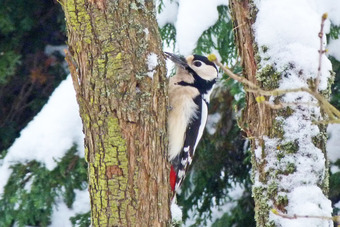 Das Foto gehört zur Serie "Vögel im Winter". Es zeigt einen Buntspecht. Es gelten die Nutzungsbedingungen der Mediothek und Pixiothek.