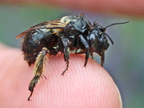 Gehörnte Mauerbiene auf einer Apfelblüte