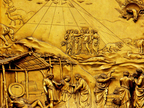 Das Foto gehört zur Serie "Paradiestür am Baptisterium von Florenz". Es zeigt die Begegnung Salomons und der Königin von Saba, ein Bronzerelief von Lorenzo Ghiberti. Es ist rechts in der untersten Reihe der zehn Bildtafeln in seine Paradiestür (auch Paradiespforte genannt) eingebunden. Es gelten die Nutzungsbedingungen der Mediothek und Pixiothek.