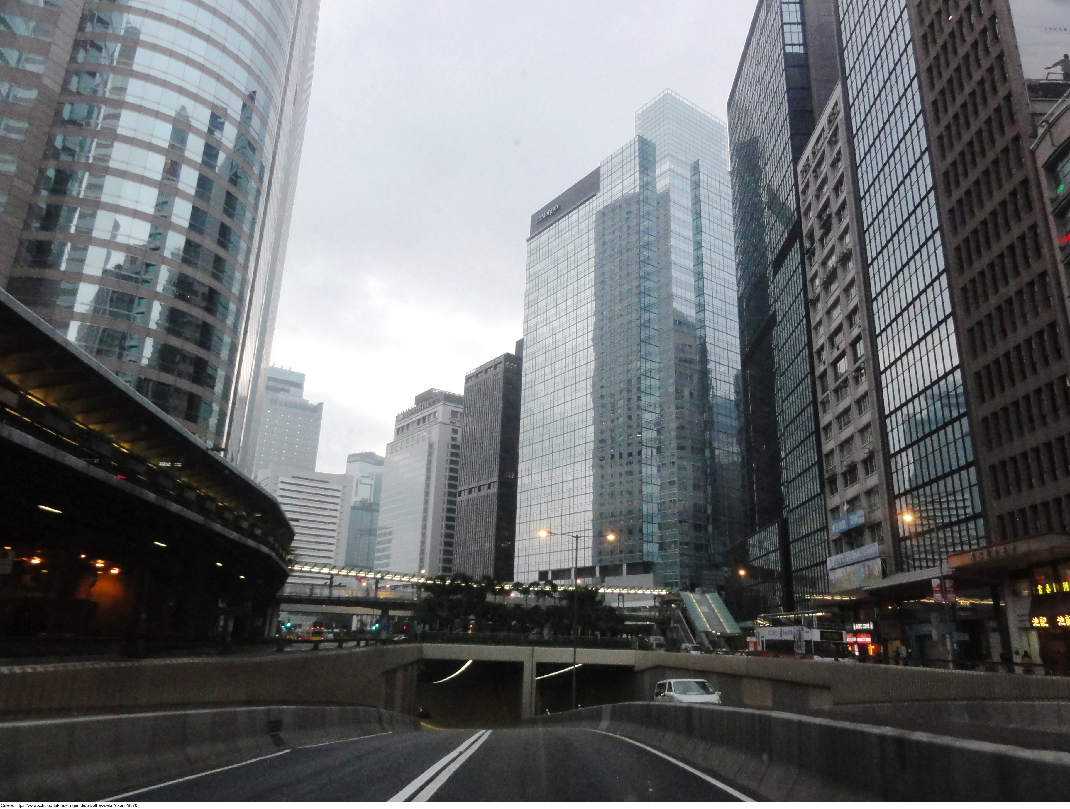 Das Foto gehört zur Serie "Hong Kong Trail". Es zeigt einen Teil der Skyline von Hong Kong, aufgenommen auf der Taxifahrt von Hong Kong