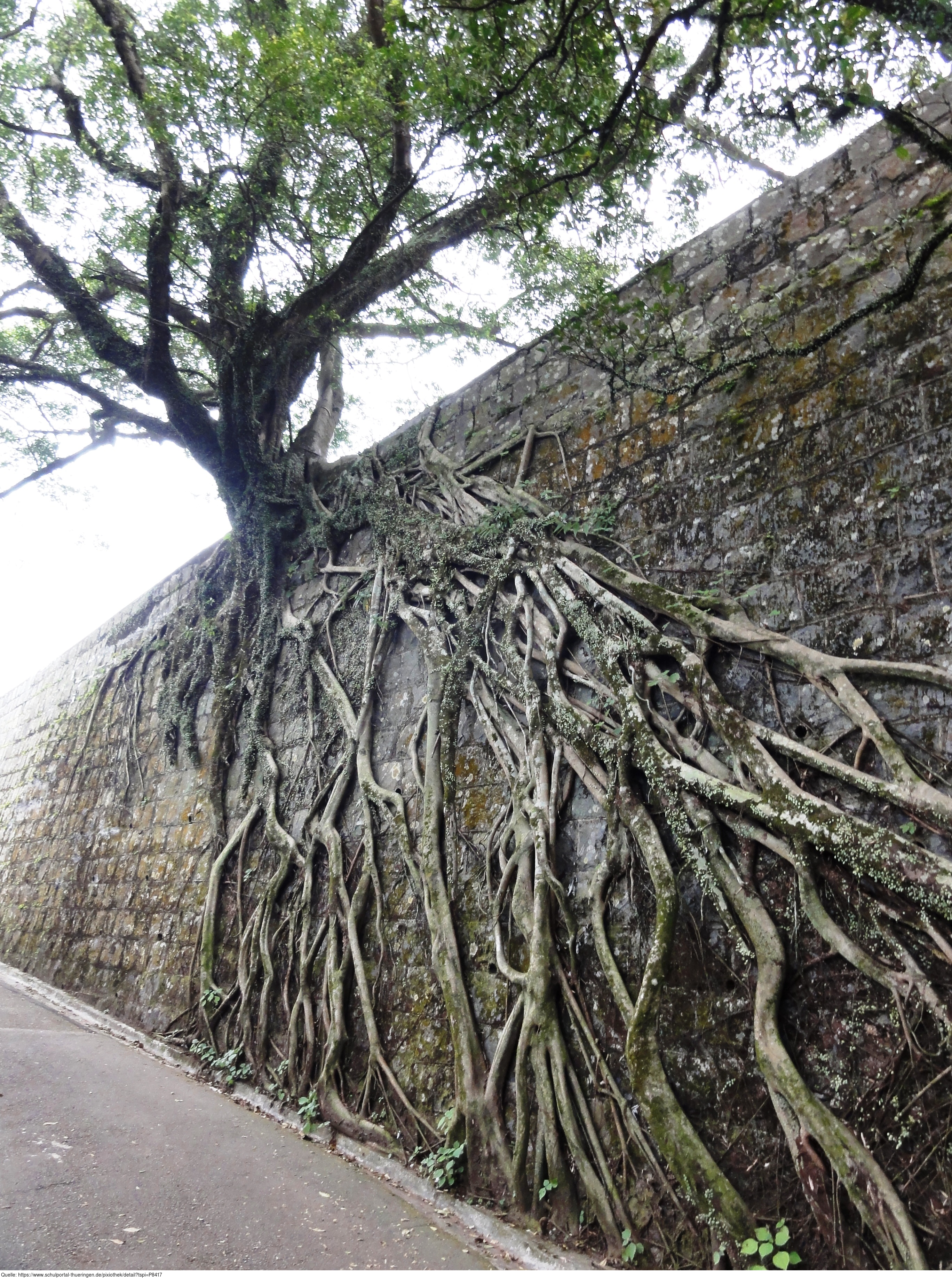 Das Foto gehört zur Serie "Hong Kong Trail". Es zeigt interessante Baumwurzeln an einer Mauer bei Aberdeen Harbour. Es gelten die Nutzungsbedingungen der Mediothek und Pixiothek.
