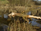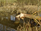 Das Foto gehört zur Serie "Wald". Es zeigt einen Bach. Biber haben Bäume gefällt. Das Bild ist unter CC0 lizenziert und kann somit frei verwendet werden.