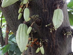 Das Foto gehört zur Serie "Kakao". Es zeigt geschlossene, geöffnete und verwelkte Blüten sowie sich entwickelnde Früchte am Stamm eines Kakaobaums. Das Bild ist unter CC0 lizenziert und kann somit frei verwendet werden.