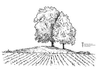 Das Bild gehört zur Serie "Zeichnungen Steinzeit - Museum für Ur- und Frühgeschichte Thüringens". Abgebildet ist ein Grabhügel. Es gelten die Nutzungsbedingungen der Mediothek und Pixiothek.