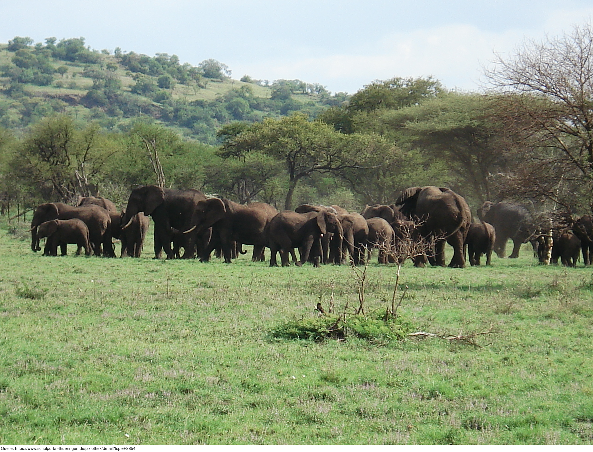 Das Bild wurde in Tansania aufgenommen. Es zeigt eine Herde Elefanten. Es gelten die Nutzungsbedingungen der Mediothek und Pixiothek.