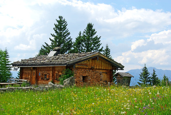 Das Foto gehört zur Serie "Alpen". Es zeigt eine Almhütte. Das Bild ist unter CC0 lizenziert und kann somit frei verwendet werden.