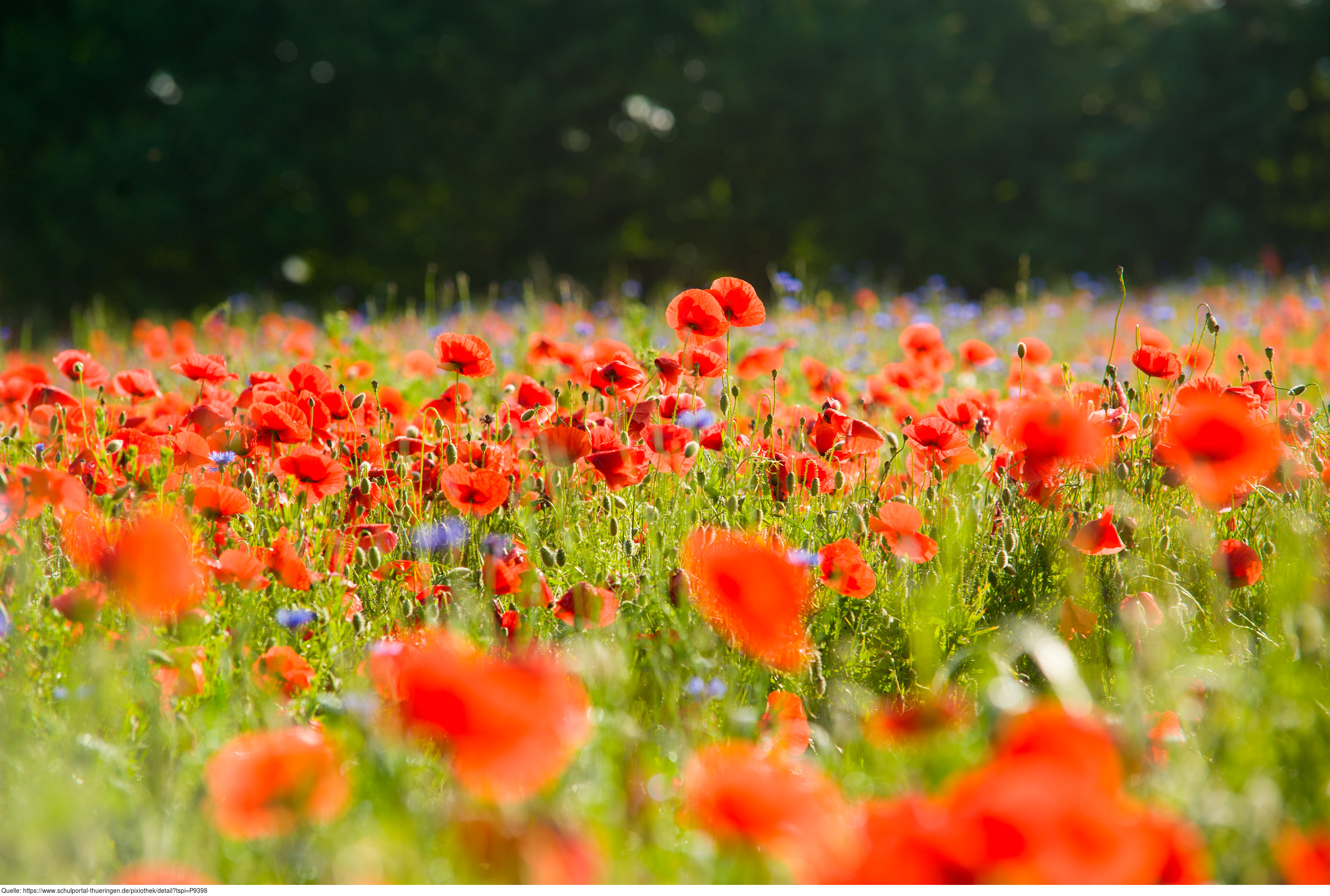 Das Foto gehört zur Serie "Blüten von Blumen". Es zeigt ein Feld mit Blüten vom Mohn (Papaver). Das Bild ist unter CC0 lizenziert und kann somit frei verwendet werden.