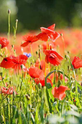 Das Foto gehört zur Serie "Blüten von Blumen". Es zeigt ein Feld mit Blüten vom Mohn (Papaver). Das Bild ist unter CC0 lizenziert und kann somit frei verwendet werden.