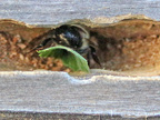 Gehörnte Mauerbiene auf einer Apfelblüte