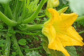 Das Bild gehört zur Serie "Blüten von Gemüsepflanzen". Es zeigt eine Blüte der Zucchini (Cucurbita pepo), die zur Pflanzenfamilie der Kürbisgewächse (Cucurbitaceae) gehört. Das Bild ist unter CC0 lizenziert und kann somit frei verwendet werden.