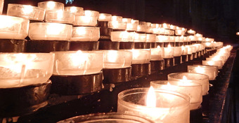 Das Foto zeigt brennende Kerzen in einer Kirche. Das Bild ist unter CC0 lizenziert und kann somit frei verwendet werden.