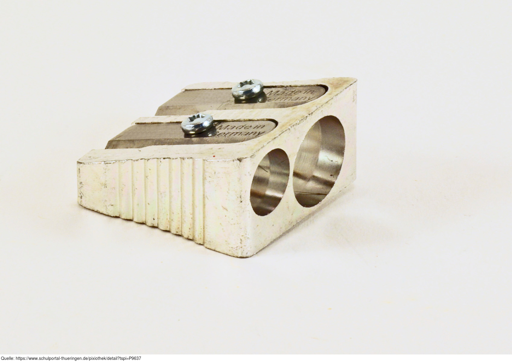 Das Foto gehört zur Serie "Schreibwaren". Es zeigt einen Stiftspitzer, auch Anspitzer oder kurz Spitzer genannt. Das Bild ist unter CC0 lizenziert und kann somit frei verwendet werden.