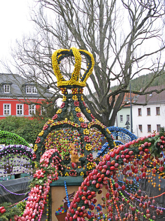 Das Foto gehört zur Serie "Ostern". Es zeigt die Osterkrone in Berga/Elster. 2015 bestand diese Dekoration aus über 15000 bemalten Eiern. Das Bild ist unter CC0 lizenziert und kann somit frei verwendet werden.